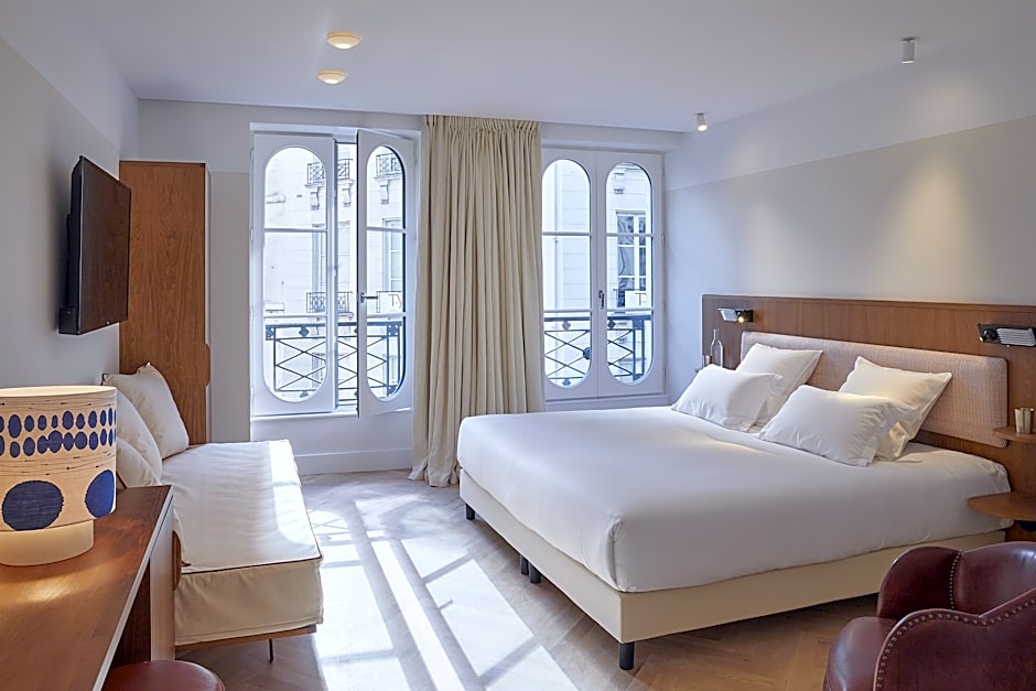 Enjoy a restful night's sleep in one of the elegant room types available at . From the cozy Comfort room to the upscale Deluxe accommodations, each room is designed to accommodate 2 adults and 1 child, ensuring a comfortable stay for families or couples. Whether you choose a Terrace room with its outdoor space or opt for the Superior room with its premium amenities, your retreat at this 4-star gem in Paris is bound to be unforgettable.